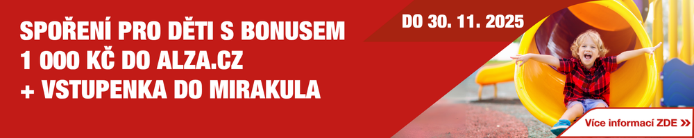 Za sjednání penzijka pro dítě online vás odměníme nejen poukazem v hodnotě 1 000 Kč do Alza.cz, ale také volnou vstupenkou do zábavního parku Mirakulum v Milovicích. Platí pouze pro dětské smlouvy!